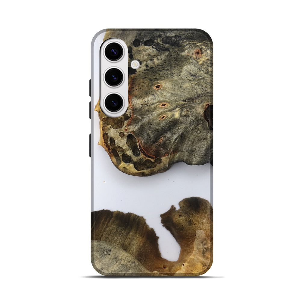 Our Live Edge cases are made from an amazing combination of stabilized wood burl and colored resin. Our stabilization process hardens the wood to protect against cracks and breaks. We do every step of the process at our shop in Northern Indiana. Perfectly fits the Galaxy S25.