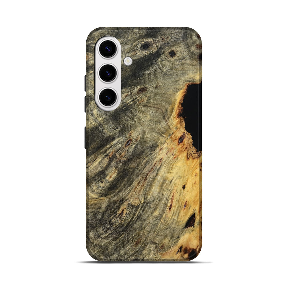 Our Live Edge cases are made from an amazing combination of stabilized wood burl and colored resin. Our stabilization process hardens the wood to protect against cracks and breaks. We do every step of the process at our shop in Northern Indiana. Perfectly fits the Galaxy S25.