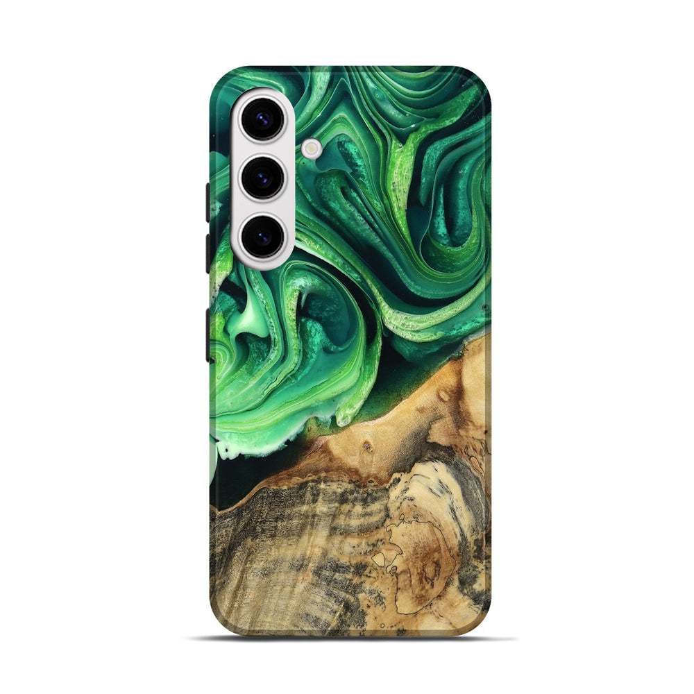 Our Live Edge cases are made from an amazing combination of stabilized wood burl and colored resin. Our stabilization process hardens the wood to protect against cracks and breaks. We do every step of the process at our shop in Northern Indiana. Perfectly fits the Galaxy S25.