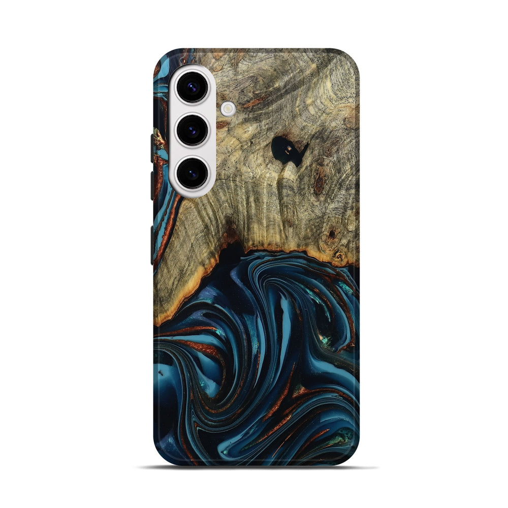 Our Live Edge cases are made from an amazing combination of stabilized wood burl and colored resin. Our stabilization process hardens the wood to protect against cracks and breaks. We do every step of the process at our shop in Northern Indiana. Perfectly fits the Galaxy S25.