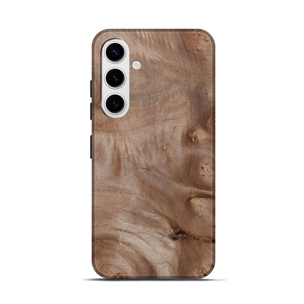 Our Live Edge cases are made from an amazing combination of stabilized wood burl and colored resin. Our stabilization process hardens the wood to protect against cracks and breaks. We do every step of the process at our shop in Northern Indiana. Perfectly fits the Galaxy S25.