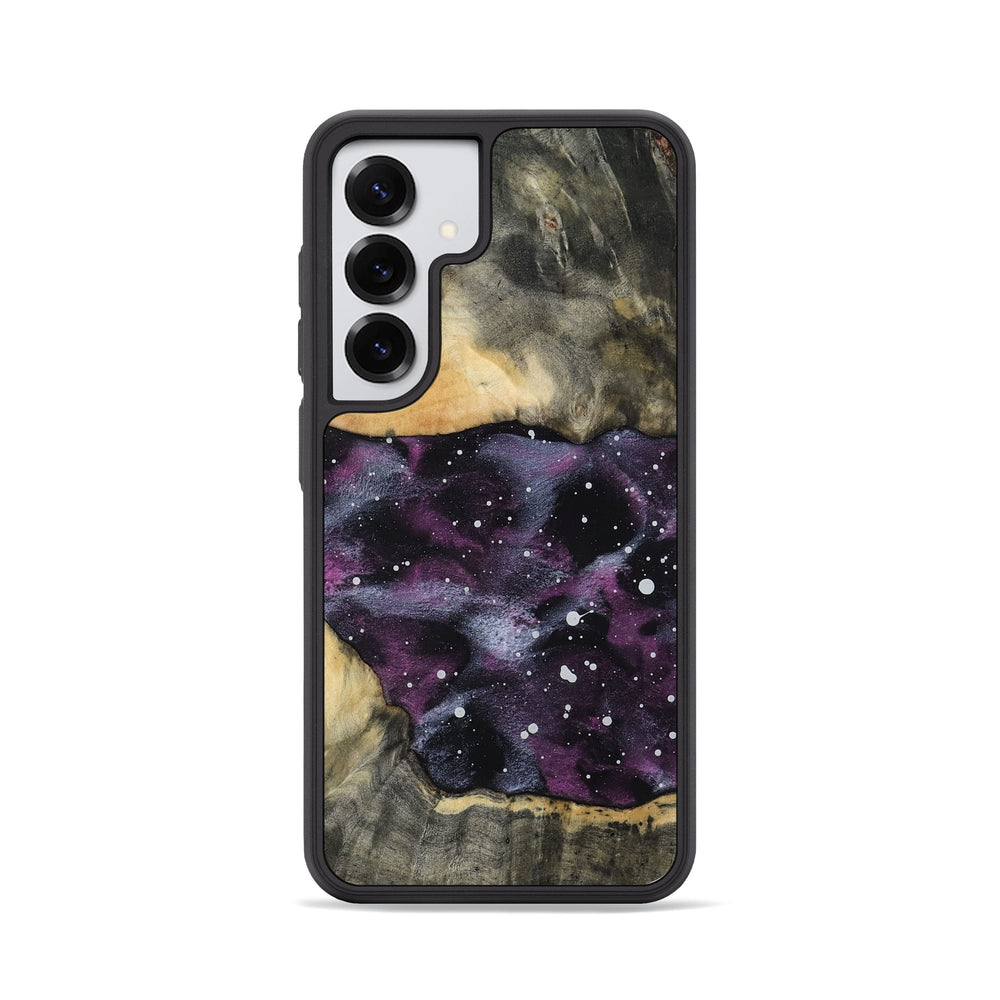 Haleigh has a rich, natural wood grain with warm tones that complement its unique design. It features a beautiful galaxy pattern of deep purples and subtle white specks, creating a striking contrast.