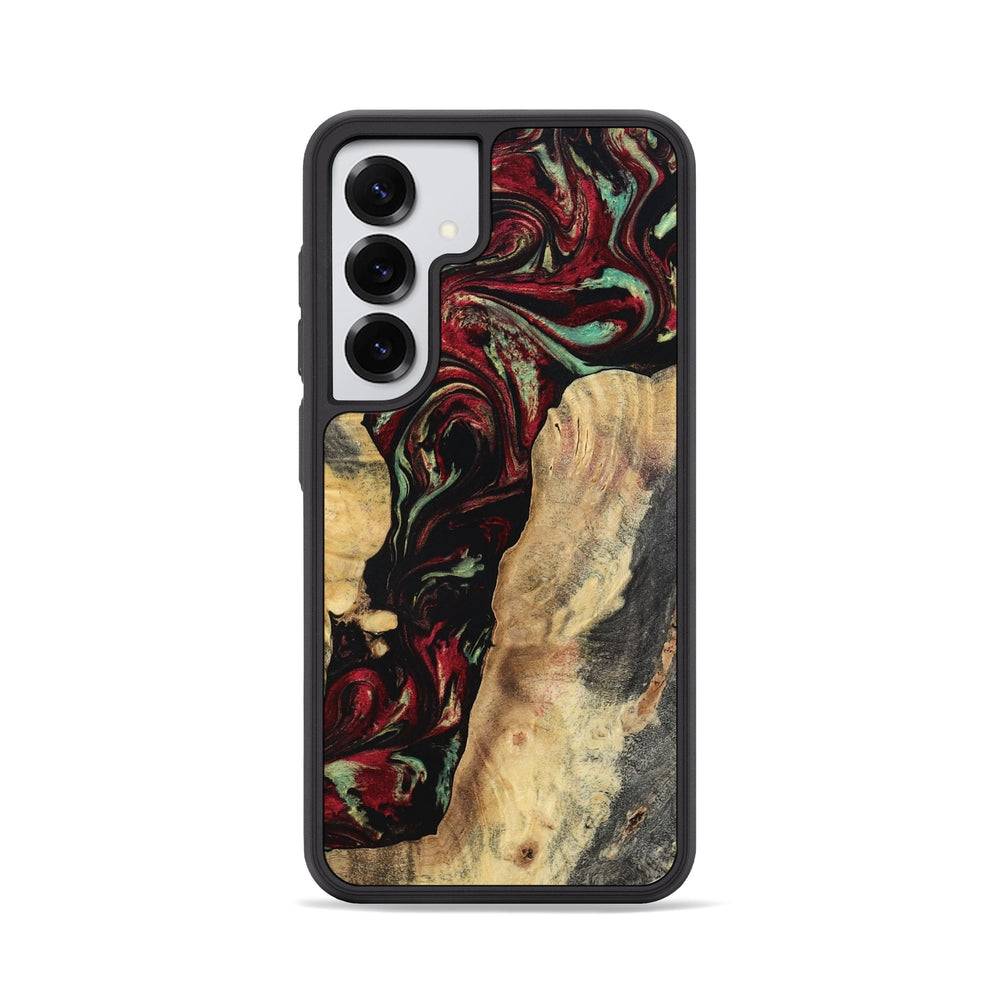 Kaiden has smooth, swirled patterns in deep red and green, blending beautifully with the natural wood grain. Its striking design draws the eye and adds a warm touch to any space.