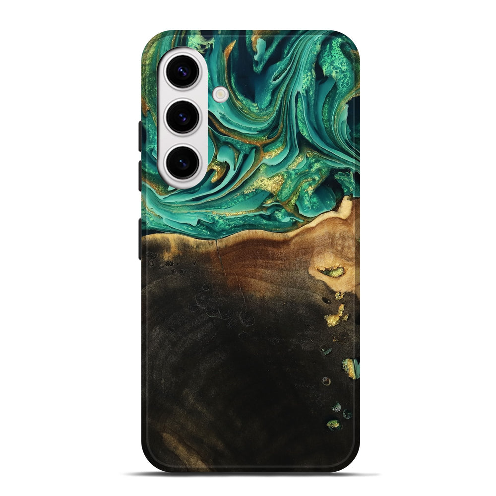 Our Live Edge cases are made from an amazing combination of stabilized wood burl and colored resin. Our stabilization process hardens the wood to protect against cracks and breaks. We do every step of the process at our shop in Northern Indiana. Perfectly fits the Galaxy S25 Plus.