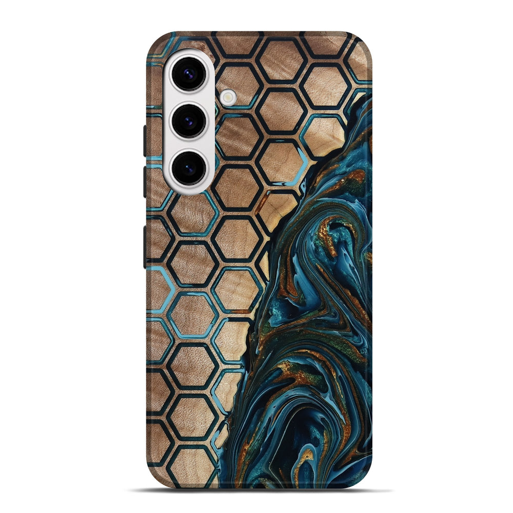 Our Live Edge cases are made from an amazing combination of stabilized wood burl and colored resin. Our stabilization process hardens the wood to protect against cracks and breaks. We do every step of the process at our shop in Northern Indiana. Perfectly fits the Galaxy S25 Plus.
