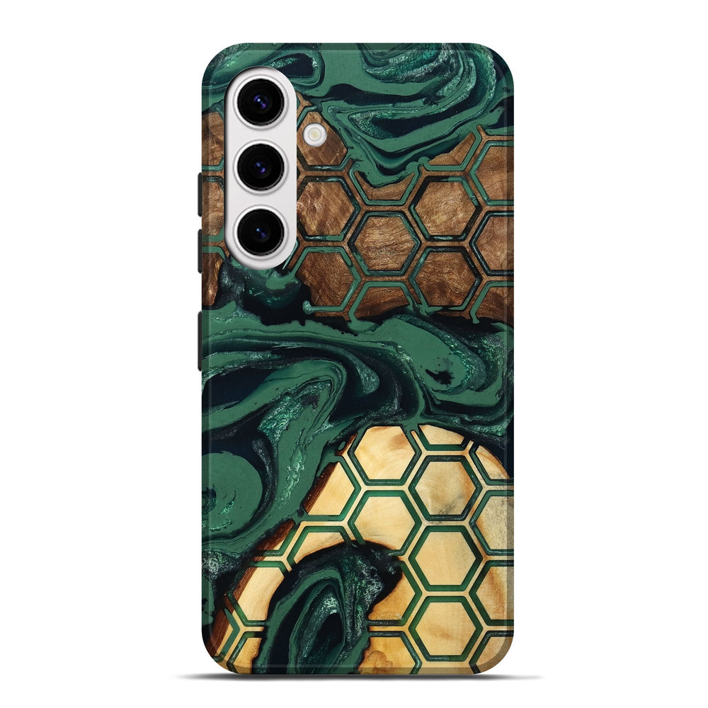 Our Live Edge cases are made from an amazing combination of stabilized wood burl and colored resin. Our stabilization process hardens the wood to protect against cracks and breaks. We do every step of the process at our shop in Northern Indiana. Perfectly fits the Galaxy S25 Plus.