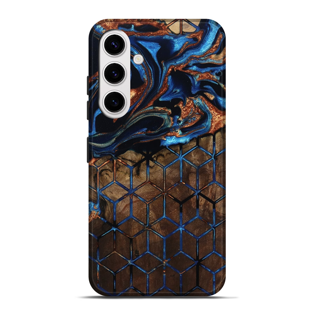 Our Live Edge cases are made from an amazing combination of stabilized wood burl and colored resin. Our stabilization process hardens the wood to protect against cracks and breaks. We do every step of the process at our shop in Northern Indiana. Perfectly fits the Galaxy S25 Plus.