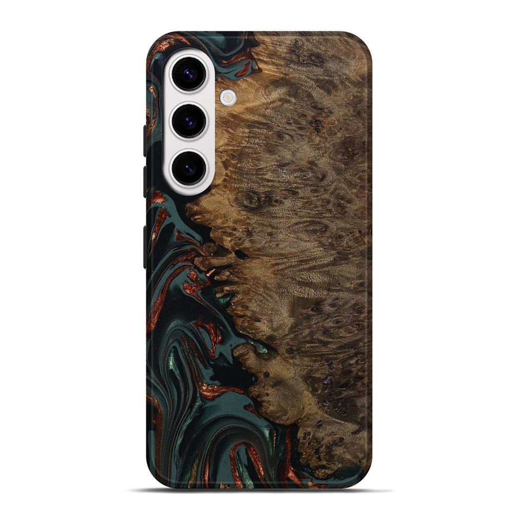 Our Live Edge cases are made from an amazing combination of stabilized wood burl and colored resin. Our stabilization process hardens the wood to protect against cracks and breaks. We do every step of the process at our shop in Northern Indiana. Perfectly fits the Galaxy S25 Plus.