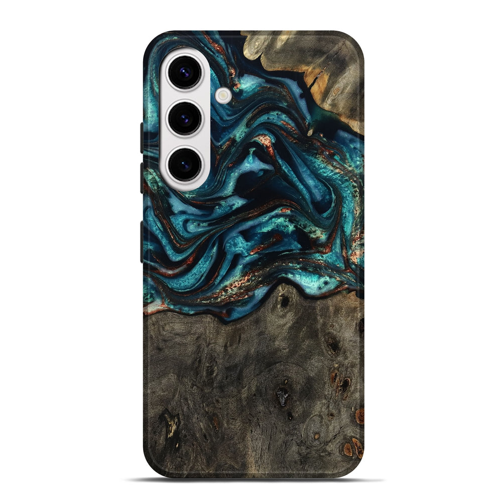 Our Live Edge cases are made from an amazing combination of stabilized wood burl and colored resin. Our stabilization process hardens the wood to protect against cracks and breaks. We do every step of the process at our shop in Northern Indiana. Perfectly fits the Galaxy S25 Plus.