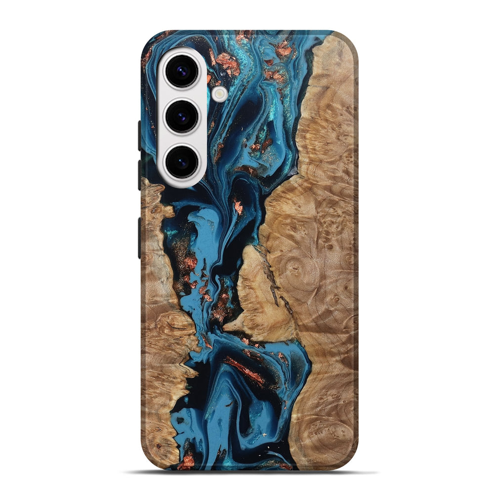 Our Live Edge cases are made from an amazing combination of stabilized wood burl and colored resin. Our stabilization process hardens the wood to protect against cracks and breaks. We do every step of the process at our shop in Northern Indiana. Perfectly fits the Galaxy S25 Plus.