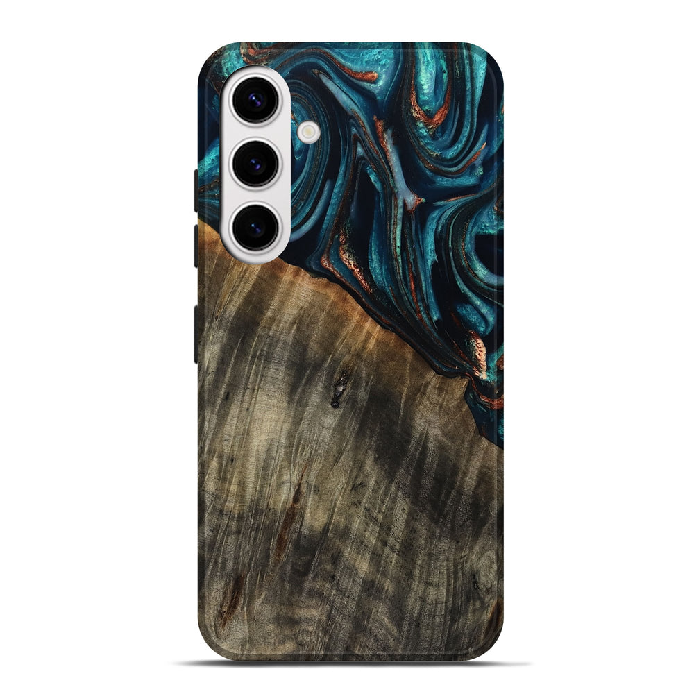 Our Live Edge cases are made from an amazing combination of stabilized wood burl and colored resin. Our stabilization process hardens the wood to protect against cracks and breaks. We do every step of the process at our shop in Northern Indiana. Perfectly fits the Galaxy S25 Plus.