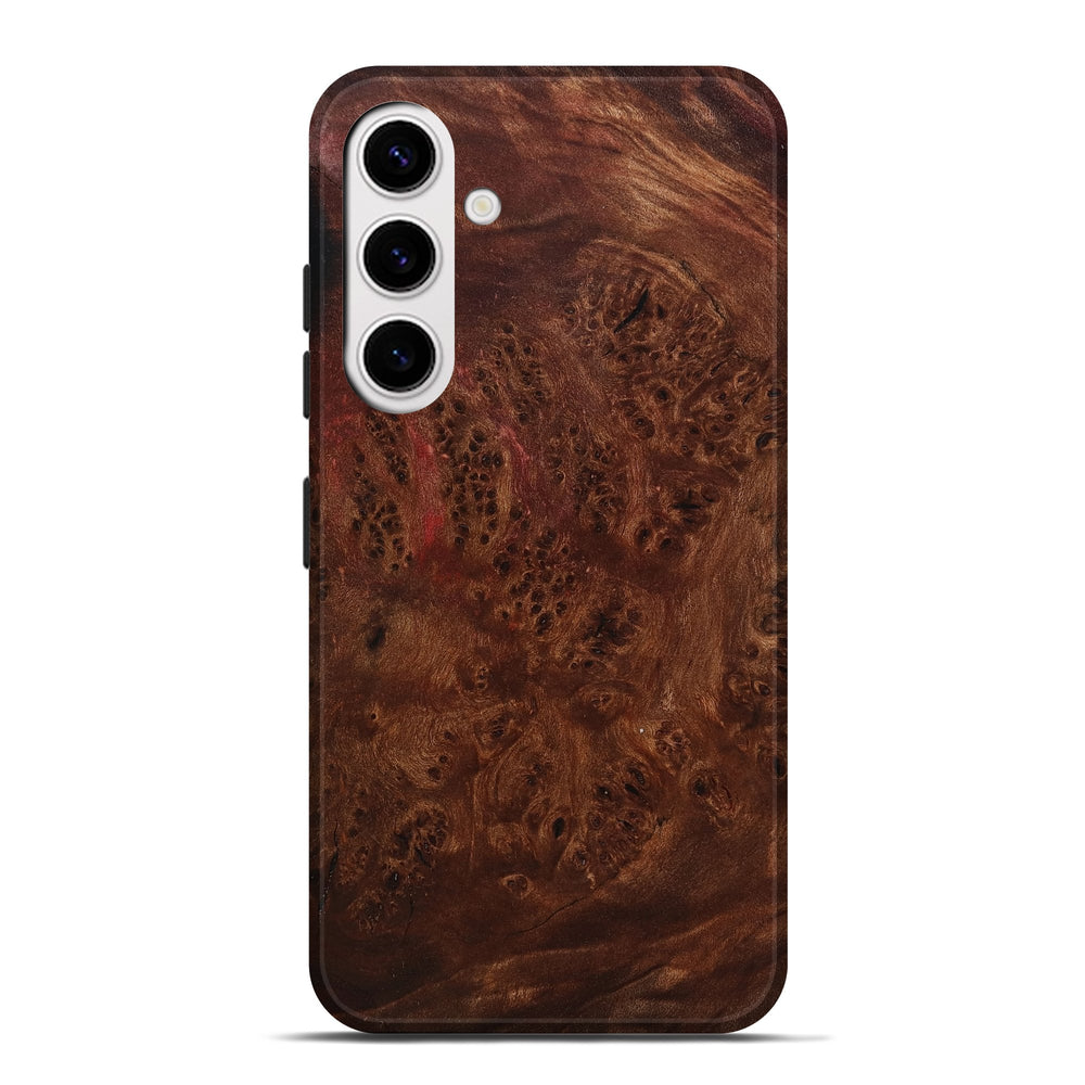 Our Live Edge cases are made from an amazing combination of stabilized wood burl and colored resin. Our stabilization process hardens the wood to protect against cracks and breaks. We do every step of the process at our shop in Northern Indiana. Perfectly fits the Galaxy S25 Plus.