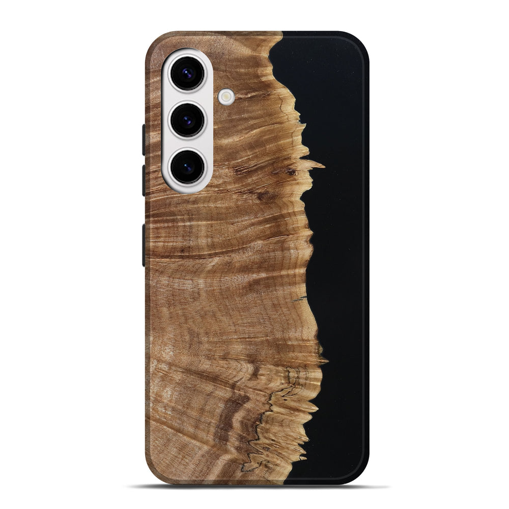 Our Live Edge cases are made from an amazing combination of stabilized wood burl and colored resin. Our stabilization process hardens the wood to protect against cracks and breaks. We do every step of the process at our shop in Northern Indiana. Perfectly fits the Galaxy S25 Plus.
