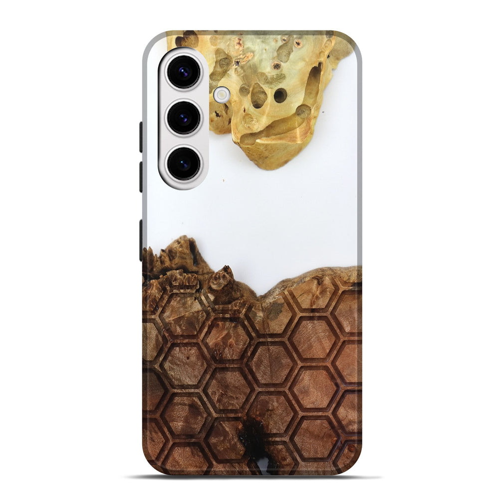 Our Live Edge cases are made from an amazing combination of stabilized wood burl and colored resin. Our stabilization process hardens the wood to protect against cracks and breaks. We do every step of the process at our shop in Northern Indiana. Perfectly fits the Galaxy S25 Plus.