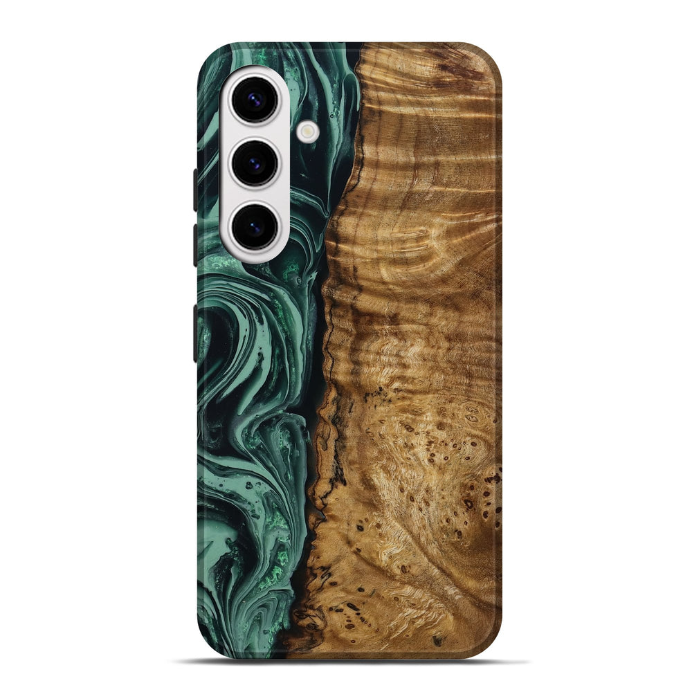 Our Live Edge cases are made from an amazing combination of stabilized wood burl and colored resin. Our stabilization process hardens the wood to protect against cracks and breaks. We do every step of the process at our shop in Northern Indiana. Perfectly fits the Galaxy S25 Plus.