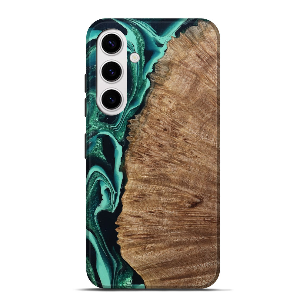 Our Live Edge cases are made from an amazing combination of stabilized wood burl and colored resin. Our stabilization process hardens the wood to protect against cracks and breaks. We do every step of the process at our shop in Northern Indiana. Perfectly fits the Galaxy S25 Plus.