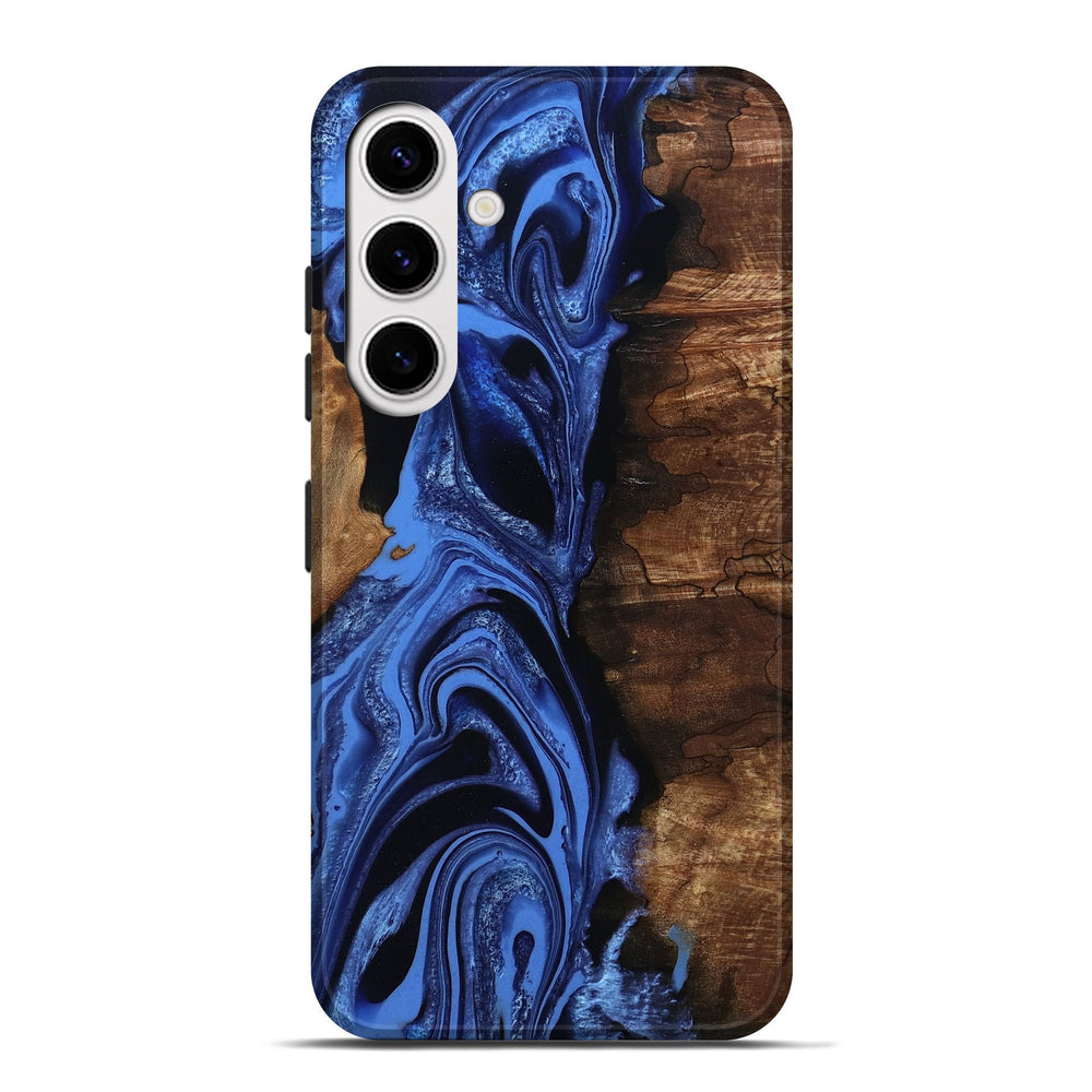 Our Live Edge cases are made from an amazing combination of stabilized wood burl and colored resin. Our stabilization process hardens the wood to protect against cracks and breaks. We do every step of the process at our shop in Northern Indiana. Perfectly fits the Galaxy S25 Plus.