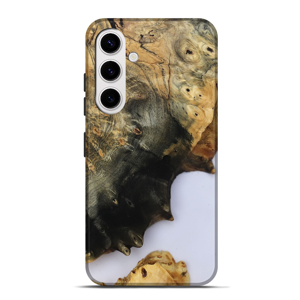 Our Live Edge cases are made from an amazing combination of stabilized wood burl and colored resin. Our stabilization process hardens the wood to protect against cracks and breaks. We do every step of the process at our shop in Northern Indiana. Perfectly fits the Galaxy S25 Plus.