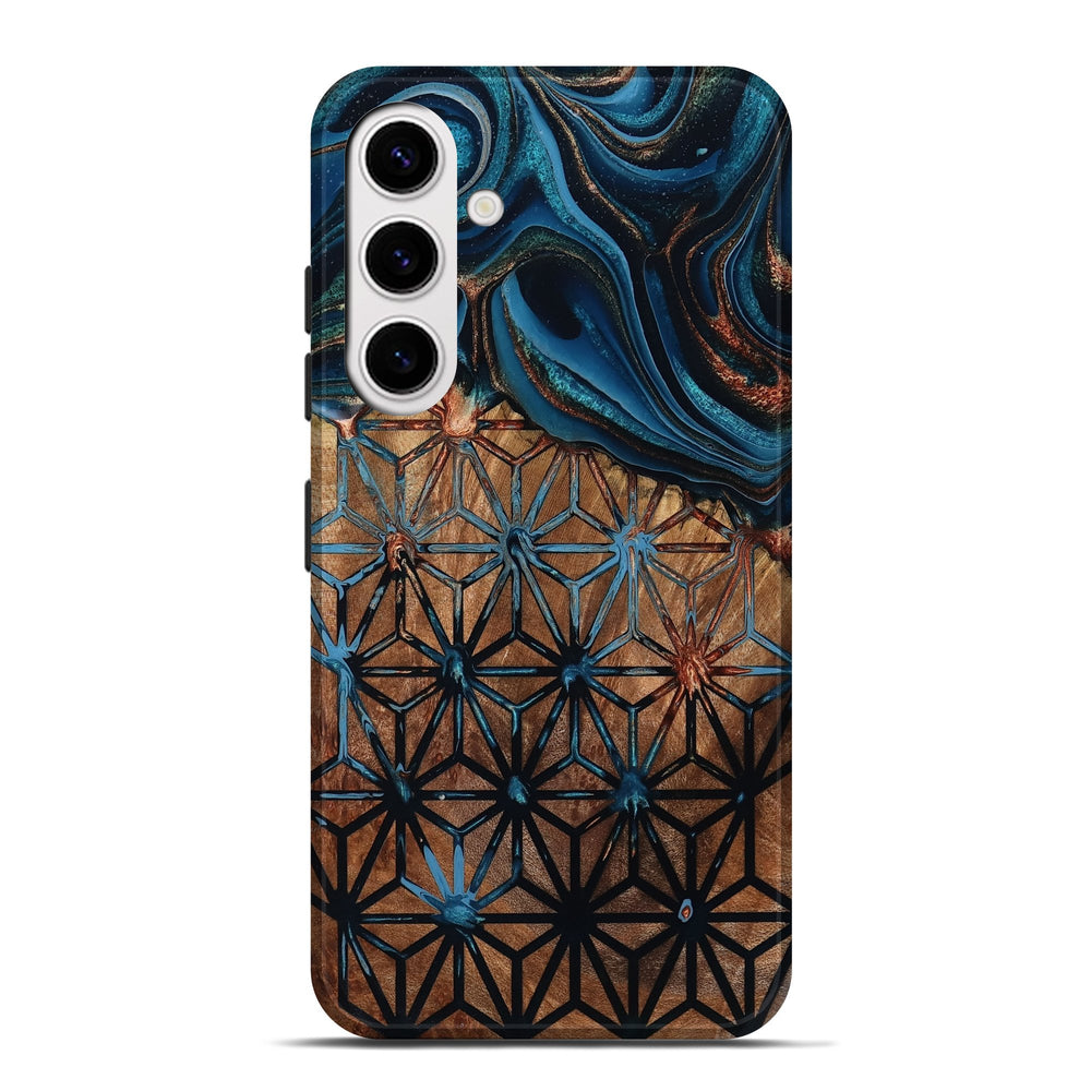 Our Live Edge cases are made from an amazing combination of stabilized wood burl and colored resin. Our stabilization process hardens the wood to protect against cracks and breaks. We do every step of the process at our shop in Northern Indiana. Perfectly fits the Galaxy S25 Plus.