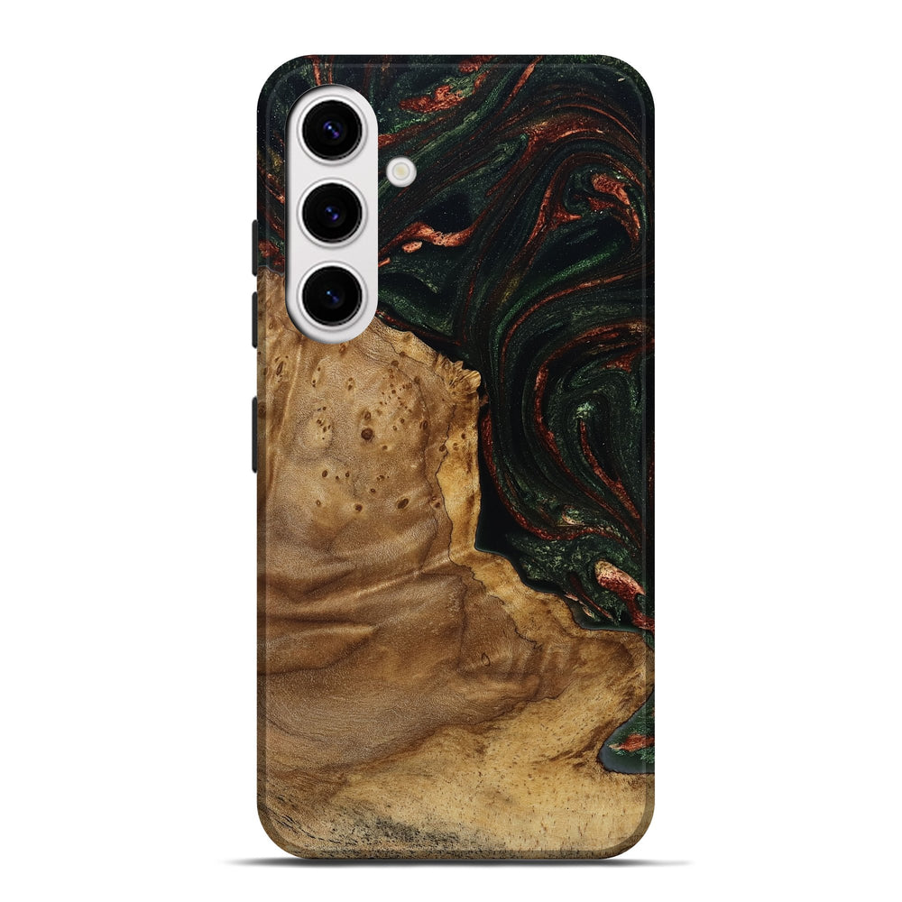 Our Live Edge cases are made from an amazing combination of stabilized wood burl and colored resin. Our stabilization process hardens the wood to protect against cracks and breaks. We do every step of the process at our shop in Northern Indiana. Perfectly fits the Galaxy S25 Plus.