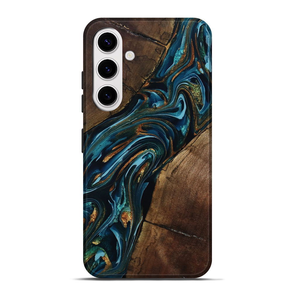 Our Live Edge cases are made from an amazing combination of stabilized wood burl and colored resin. Our stabilization process hardens the wood to protect against cracks and breaks. We do every step of the process at our shop in Northern Indiana. Perfectly fits the Galaxy S25 Plus.