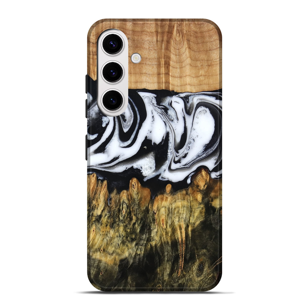 Our Live Edge cases are made from an amazing combination of stabilized wood burl and colored resin. Our stabilization process hardens the wood to protect against cracks and breaks. We do every step of the process at our shop in Northern Indiana. Perfectly fits the Galaxy S25 Plus.