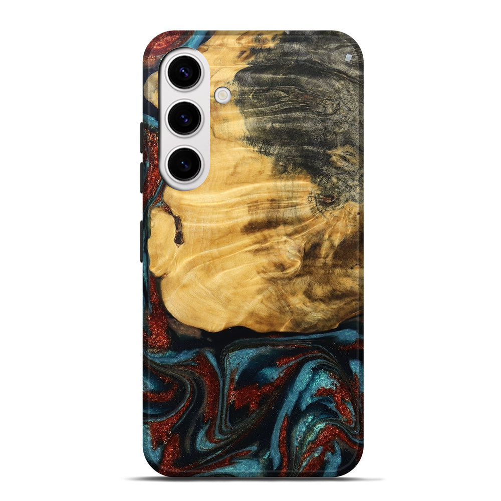 Our Live Edge cases are made from an amazing combination of stabilized wood burl and colored resin. Our stabilization process hardens the wood to protect against cracks and breaks. We do every step of the process at our shop in Northern Indiana. Perfectly fits the Galaxy S25 Plus.