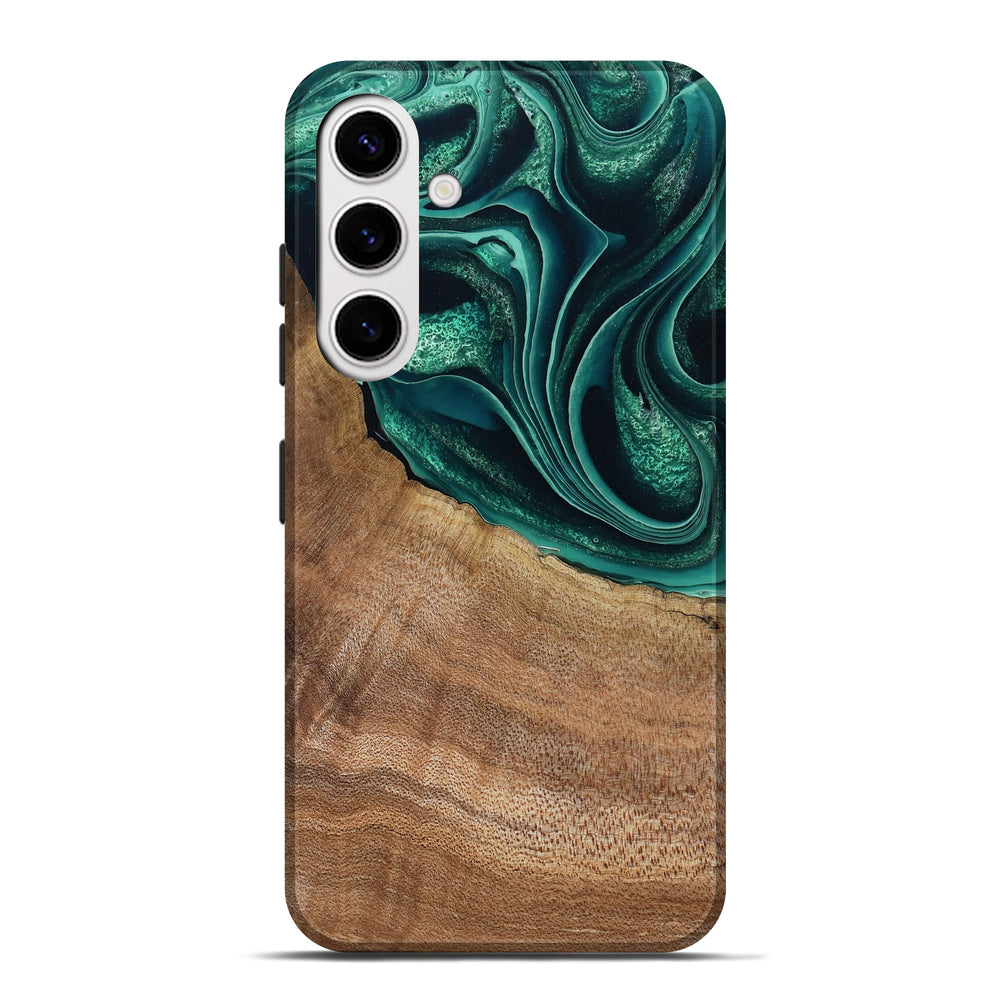Our Live Edge cases are made from an amazing combination of stabilized wood burl and colored resin. Our stabilization process hardens the wood to protect against cracks and breaks. We do every step of the process at our shop in Northern Indiana. Perfectly fits the Galaxy S25 Plus.