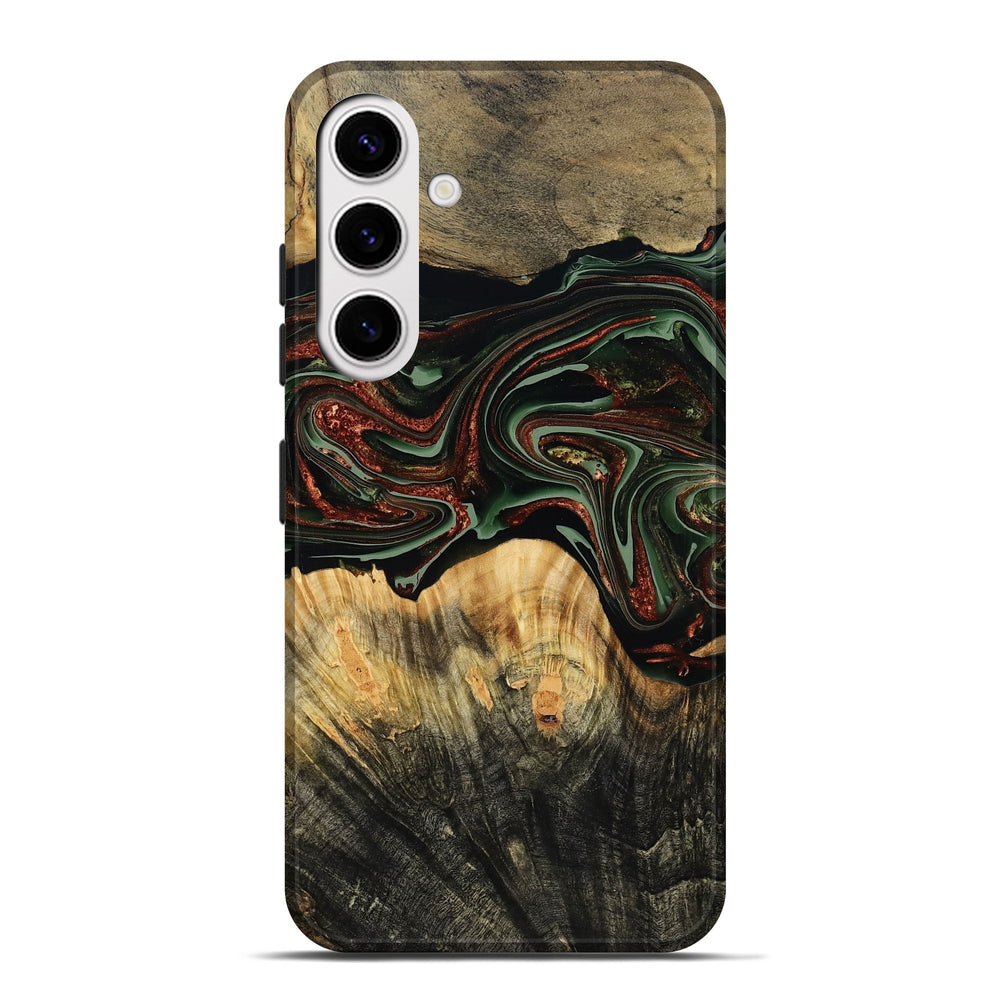 Our Live Edge cases are made from an amazing combination of stabilized wood burl and colored resin. Our stabilization process hardens the wood to protect against cracks and breaks. We do every step of the process at our shop in Northern Indiana. Perfectly fits the Galaxy S25 Plus.