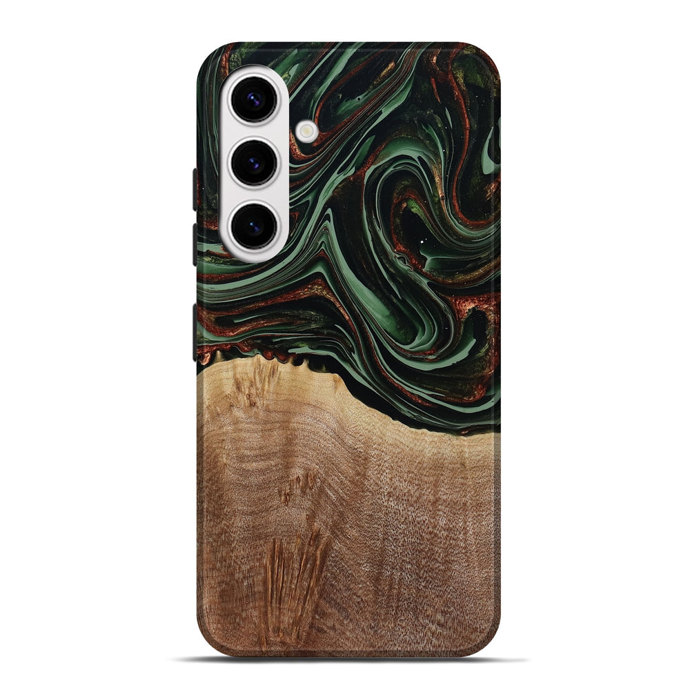 Our Live Edge cases are made from an amazing combination of stabilized wood burl and colored resin. Our stabilization process hardens the wood to protect against cracks and breaks. We do every step of the process at our shop in Northern Indiana. Perfectly fits the Galaxy S25 Plus.