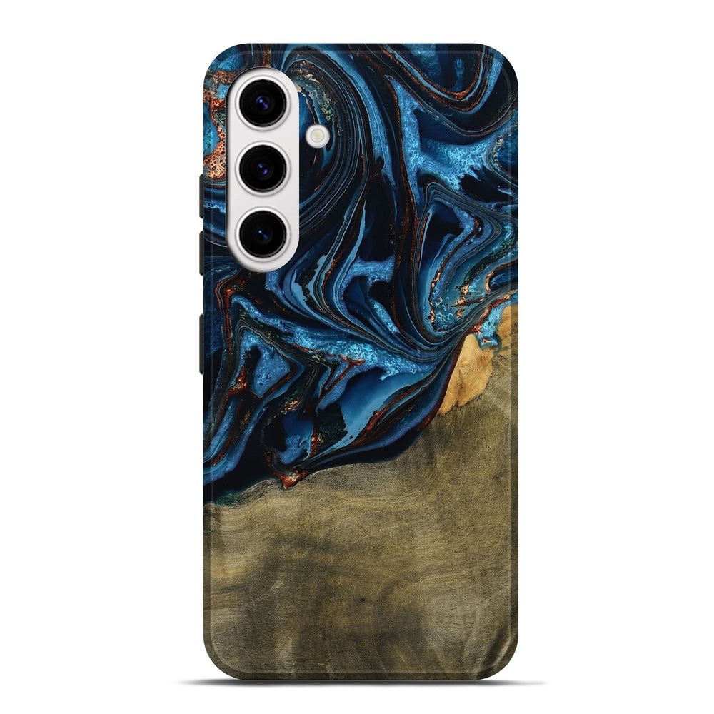Our Live Edge cases are made from an amazing combination of stabilized wood burl and colored resin. Our stabilization process hardens the wood to protect against cracks and breaks. We do every step of the process at our shop in Northern Indiana. Perfectly fits the Galaxy S25 Plus.