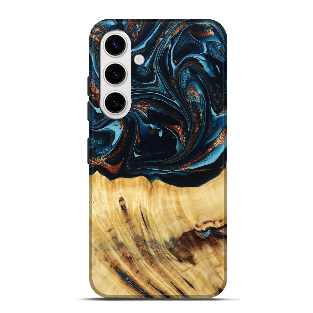 Our Live Edge cases are made from an amazing combination of stabilized wood burl and colored resin. Our stabilization process hardens the wood to protect against cracks and breaks. We do every step of the process at our shop in Northern Indiana. Perfectly fits the Galaxy S25 Plus.