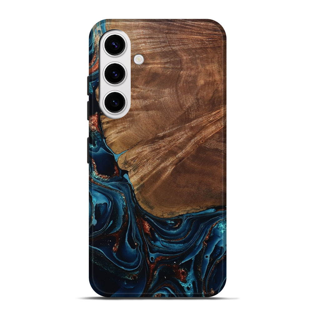 Our Live Edge cases are made from an amazing combination of stabilized wood burl and colored resin. Our stabilization process hardens the wood to protect against cracks and breaks. We do every step of the process at our shop in Northern Indiana. Perfectly fits the Galaxy S25 Plus.