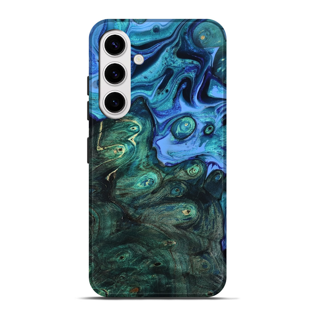Our Live Edge cases are made from an amazing combination of stabilized wood burl and colored resin. Our stabilization process hardens the wood to protect against cracks and breaks. We do every step of the process at our shop in Northern Indiana. Perfectly fits the Galaxy S25 Plus.