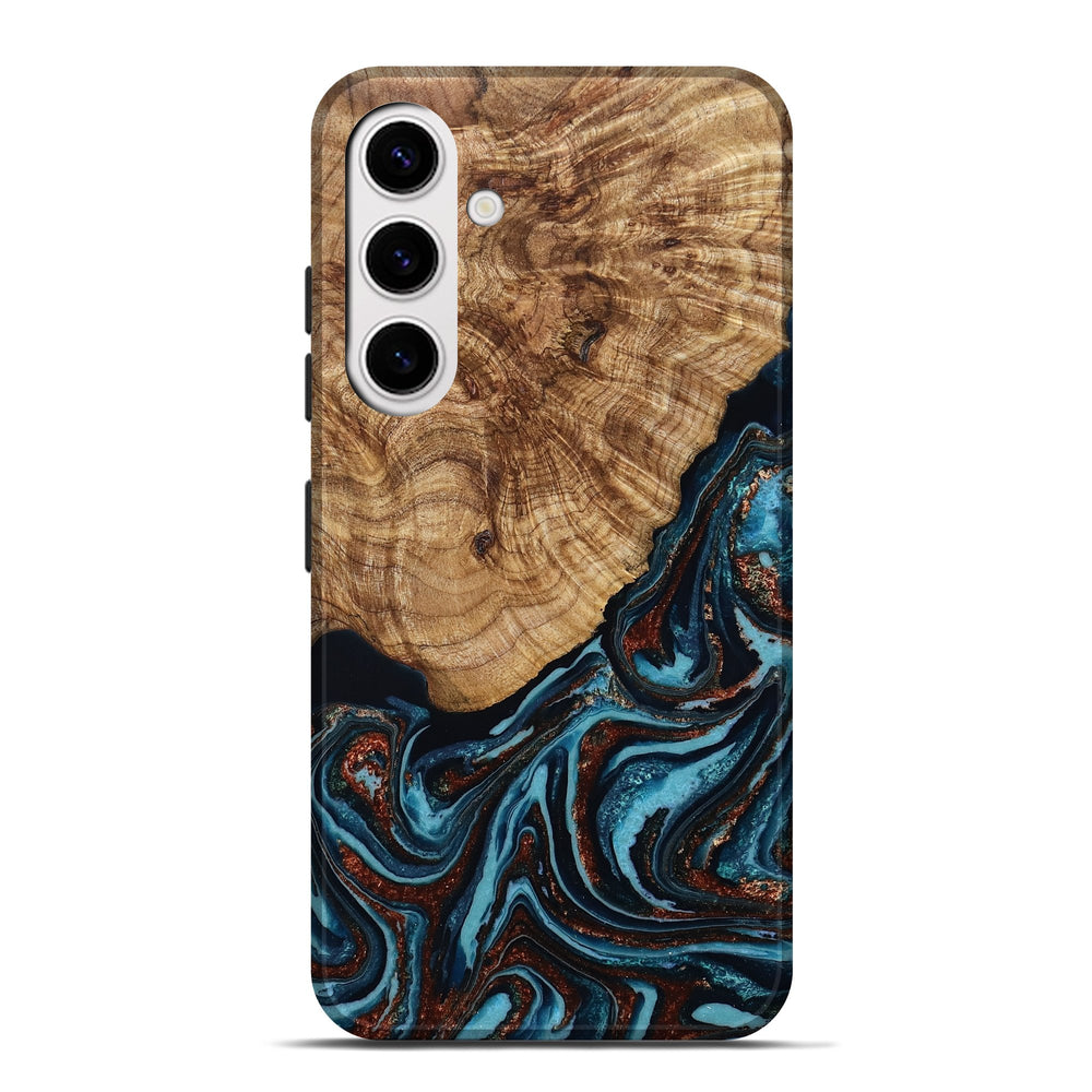 Our Live Edge cases are made from an amazing combination of stabilized wood burl and colored resin. Our stabilization process hardens the wood to protect against cracks and breaks. We do every step of the process at our shop in Northern Indiana. Perfectly fits the Galaxy S25 Plus.