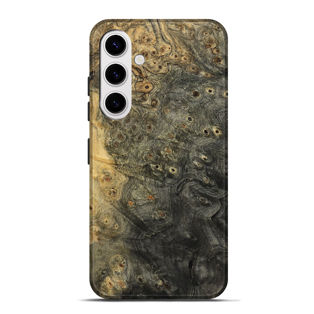 Our Live Edge cases are made from an amazing combination of stabilized wood burl and colored resin. Our stabilization process hardens the wood to protect against cracks and breaks. We do every step of the process at our shop in Northern Indiana. Perfectly fits the Galaxy S25 Plus.
