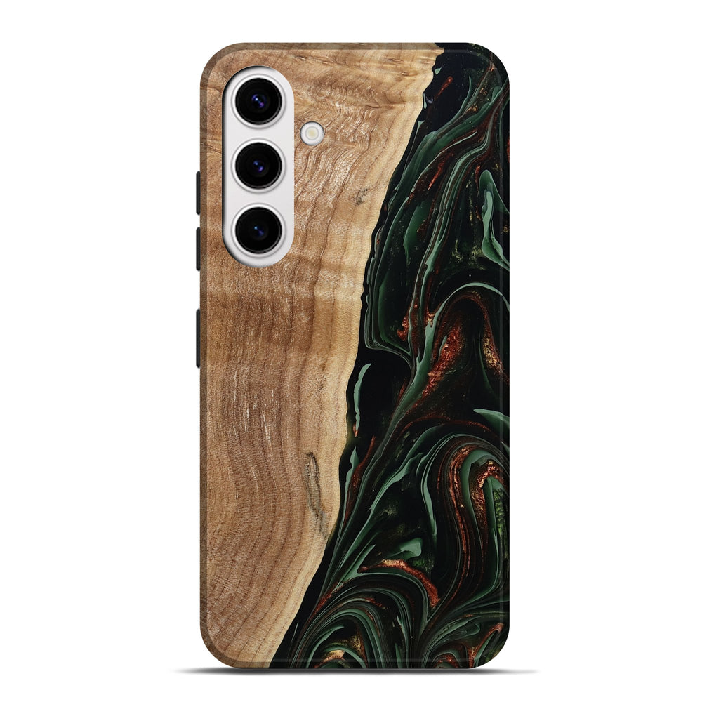Our Live Edge cases are made from an amazing combination of stabilized wood burl and colored resin. Our stabilization process hardens the wood to protect against cracks and breaks. We do every step of the process at our shop in Northern Indiana. Perfectly fits the Galaxy S25 Plus.