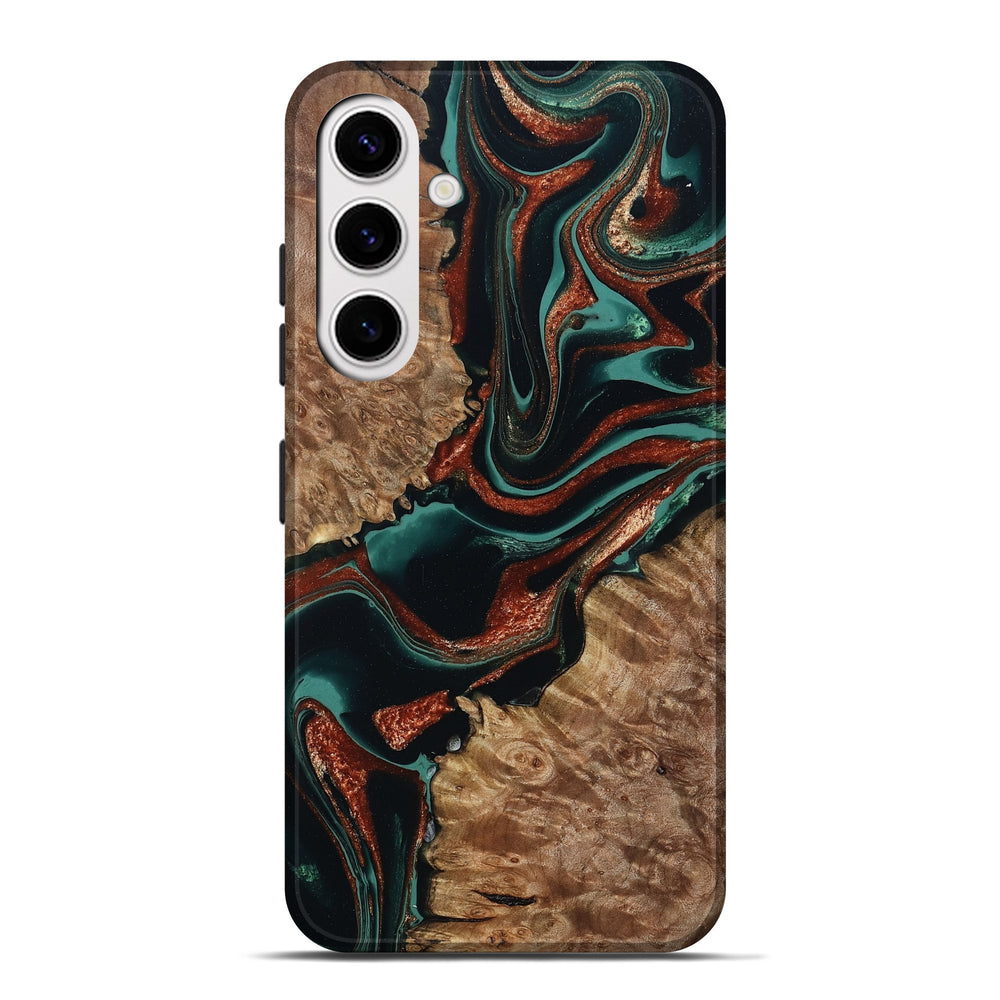 Our Live Edge cases are made from an amazing combination of stabilized wood burl and colored resin. Our stabilization process hardens the wood to protect against cracks and breaks. We do every step of the process at our shop in Northern Indiana. Perfectly fits the Galaxy S25 Plus.