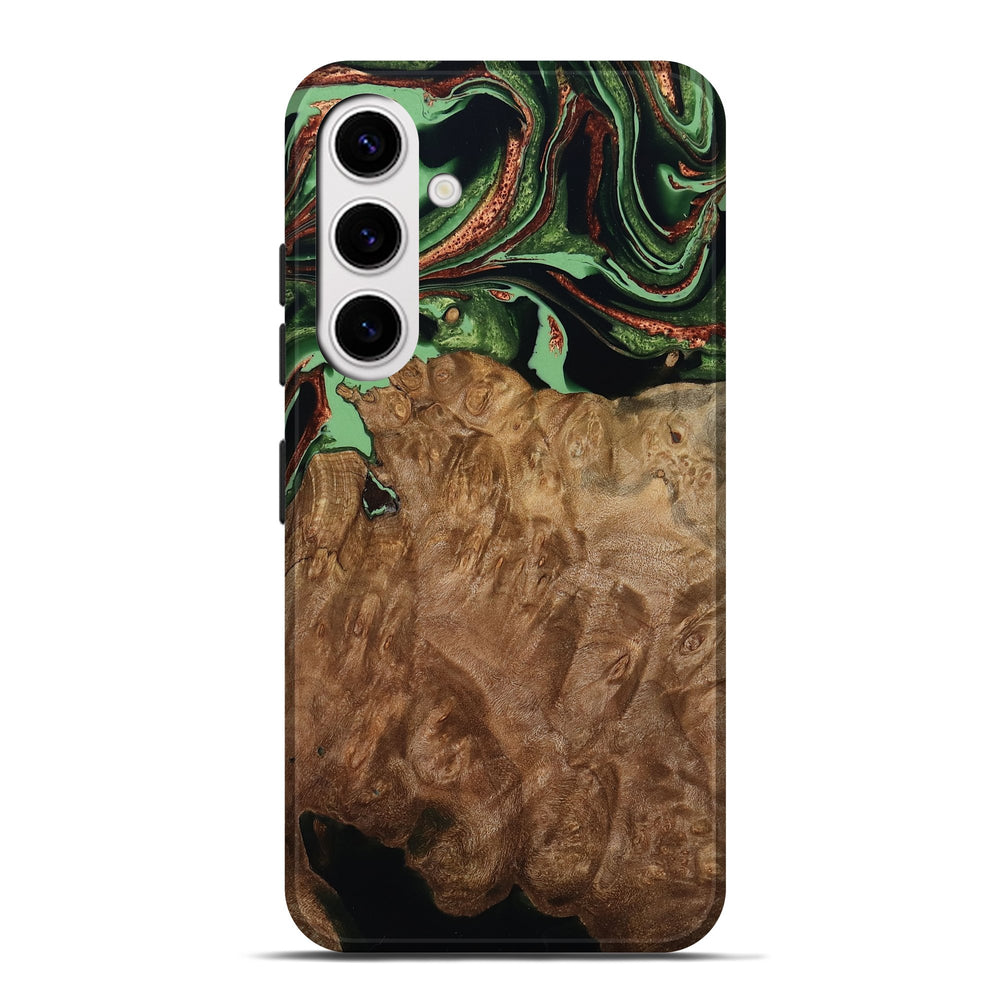 Our Live Edge cases are made from an amazing combination of stabilized wood burl and colored resin. Our stabilization process hardens the wood to protect against cracks and breaks. We do every step of the process at our shop in Northern Indiana. Perfectly fits the Galaxy S25 Plus.