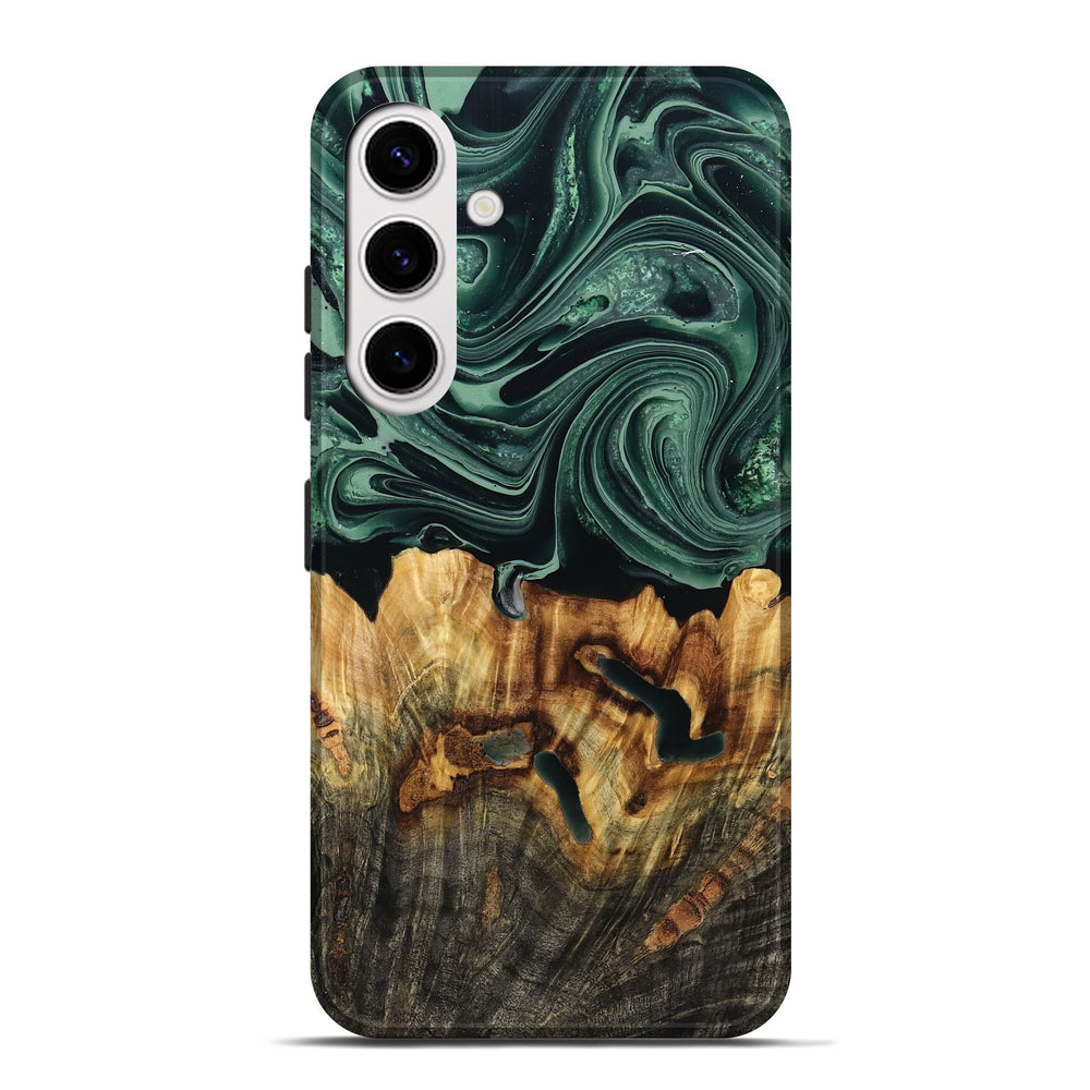 Our Live Edge cases are made from an amazing combination of stabilized wood burl and colored resin. Our stabilization process hardens the wood to protect against cracks and breaks. We do every step of the process at our shop in Northern Indiana. Perfectly fits the Galaxy S25 Plus.