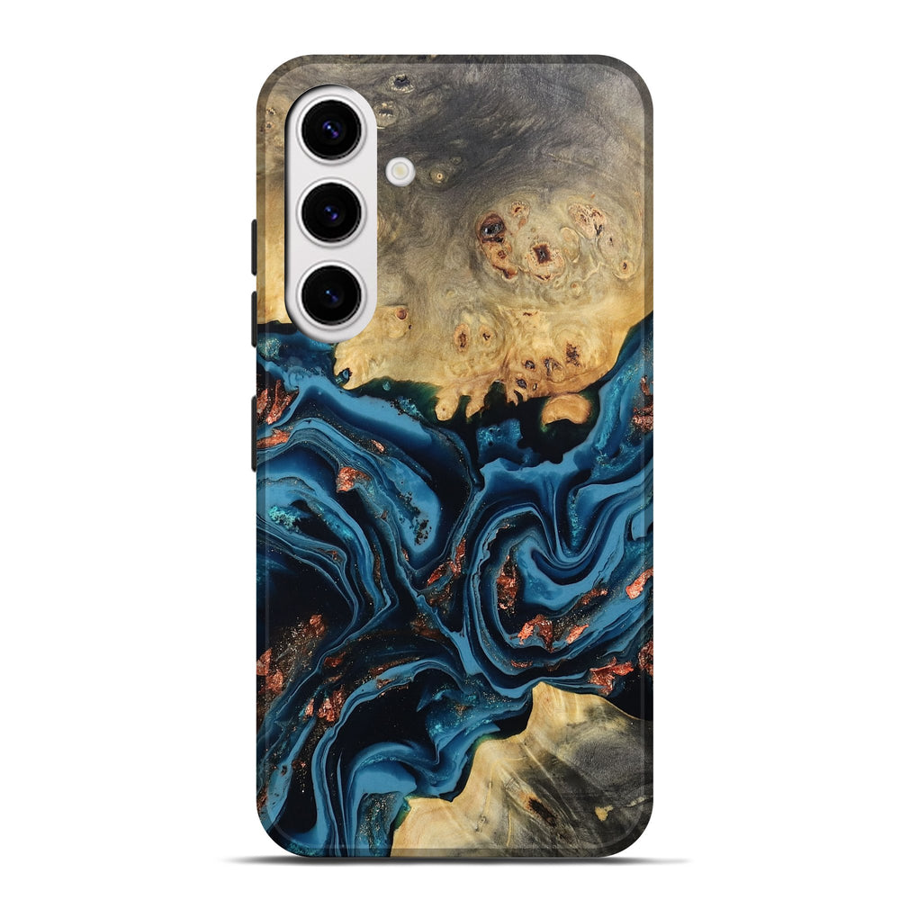 Our Live Edge cases are made from an amazing combination of stabilized wood burl and colored resin. Our stabilization process hardens the wood to protect against cracks and breaks. We do every step of the process at our shop in Northern Indiana. Perfectly fits the Galaxy S25 Plus.