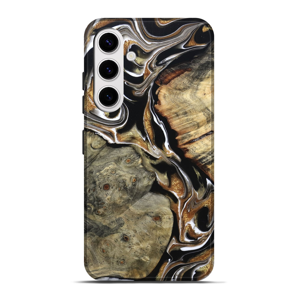 Our Live Edge cases are made from an amazing combination of stabilized wood burl and colored resin. Our stabilization process hardens the wood to protect against cracks and breaks. We do every step of the process at our shop in Northern Indiana. Perfectly fits the Galaxy S25 Plus.