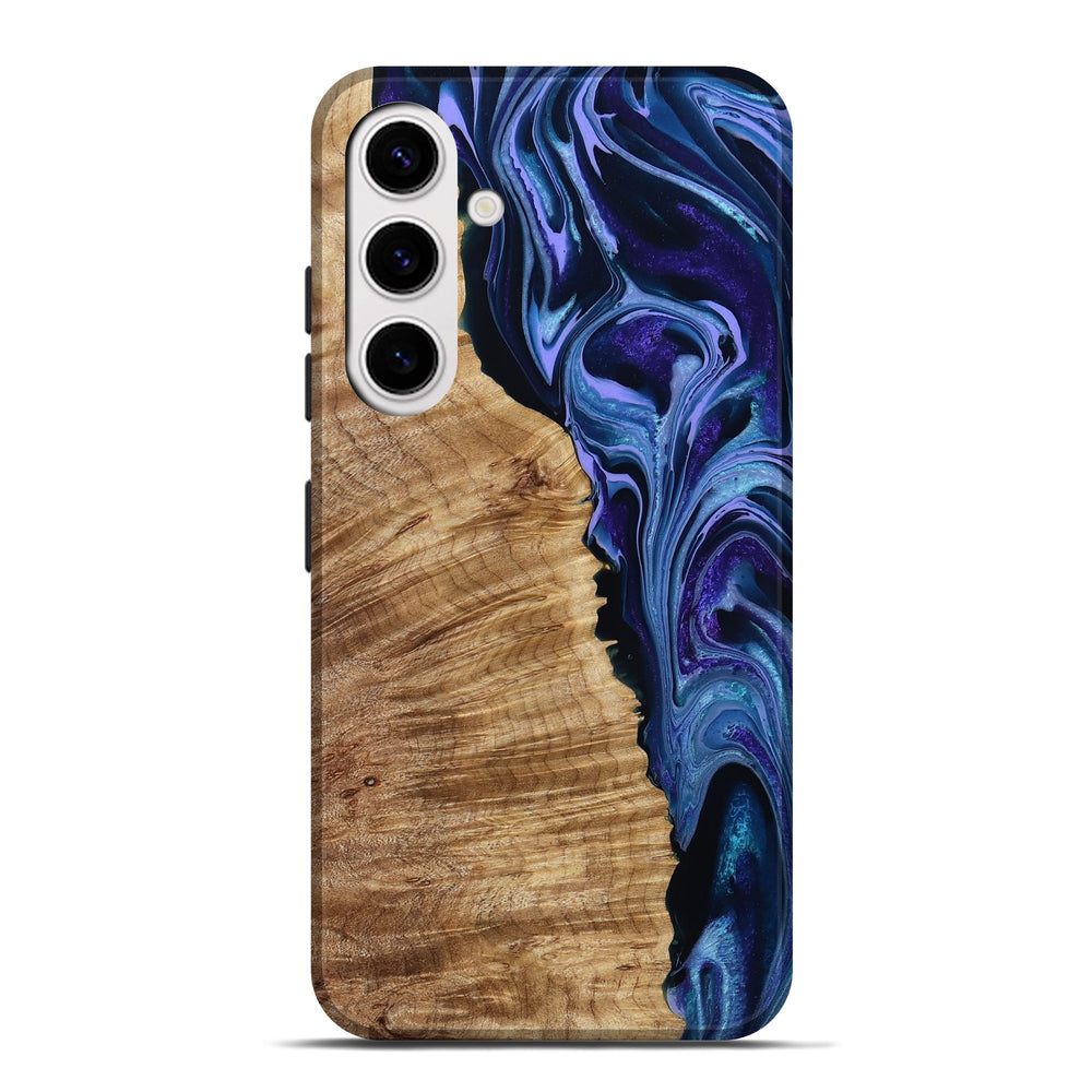 Our Live Edge cases are made from an amazing combination of stabilized wood burl and colored resin. Our stabilization process hardens the wood to protect against cracks and breaks. We do every step of the process at our shop in Northern Indiana. Perfectly fits the Galaxy S25 Plus.