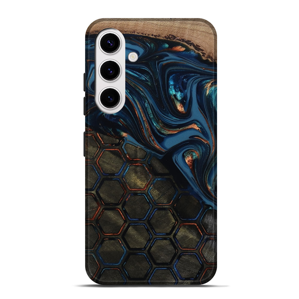 Our Live Edge cases are made from an amazing combination of stabilized wood burl and colored resin. Our stabilization process hardens the wood to protect against cracks and breaks. We do every step of the process at our shop in Northern Indiana. Perfectly fits the Galaxy S25 Plus.