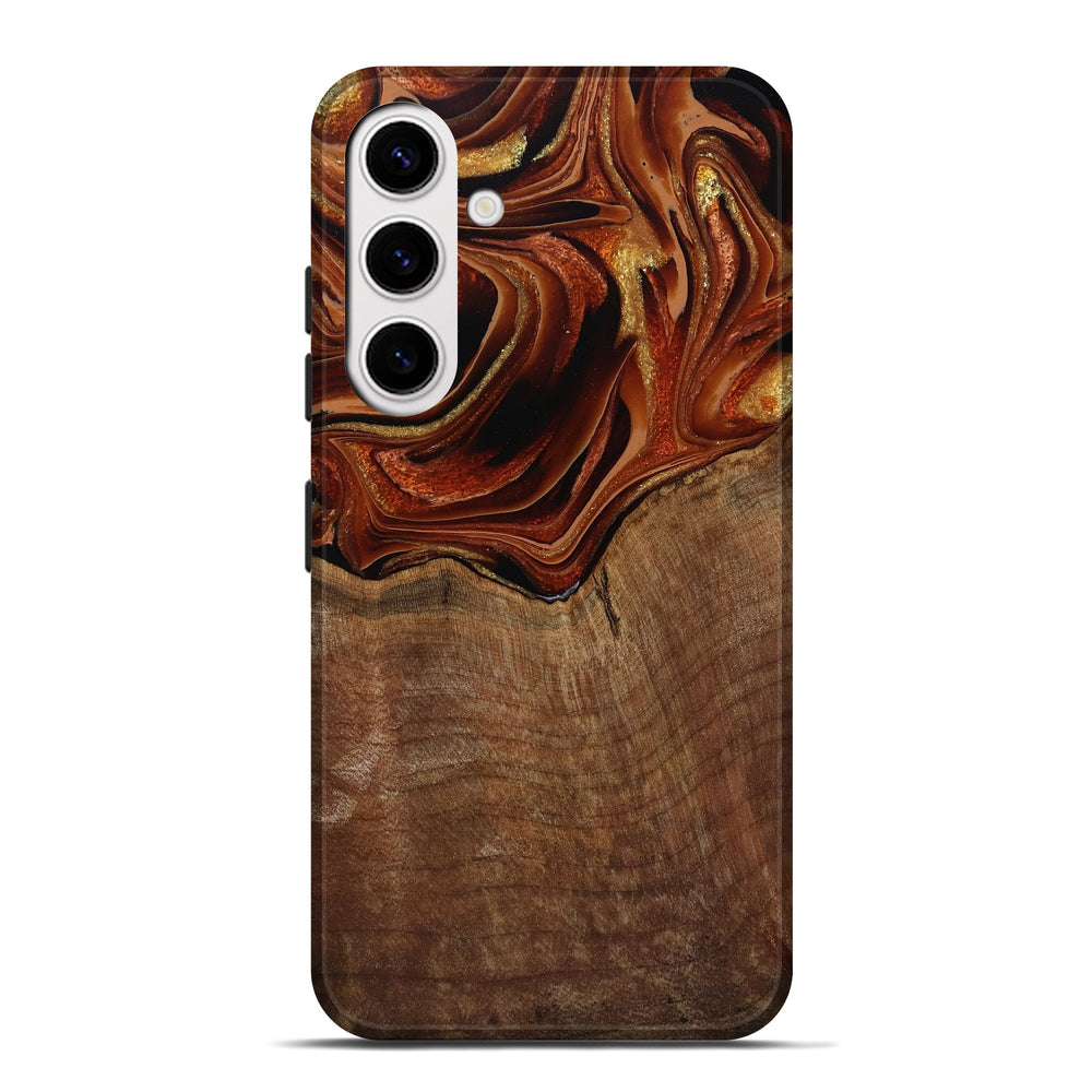 Our Live Edge cases are made from an amazing combination of stabilized wood burl and colored resin. Our stabilization process hardens the wood to protect against cracks and breaks. We do every step of the process at our shop in Northern Indiana. Perfectly fits the Galaxy S25 Plus.