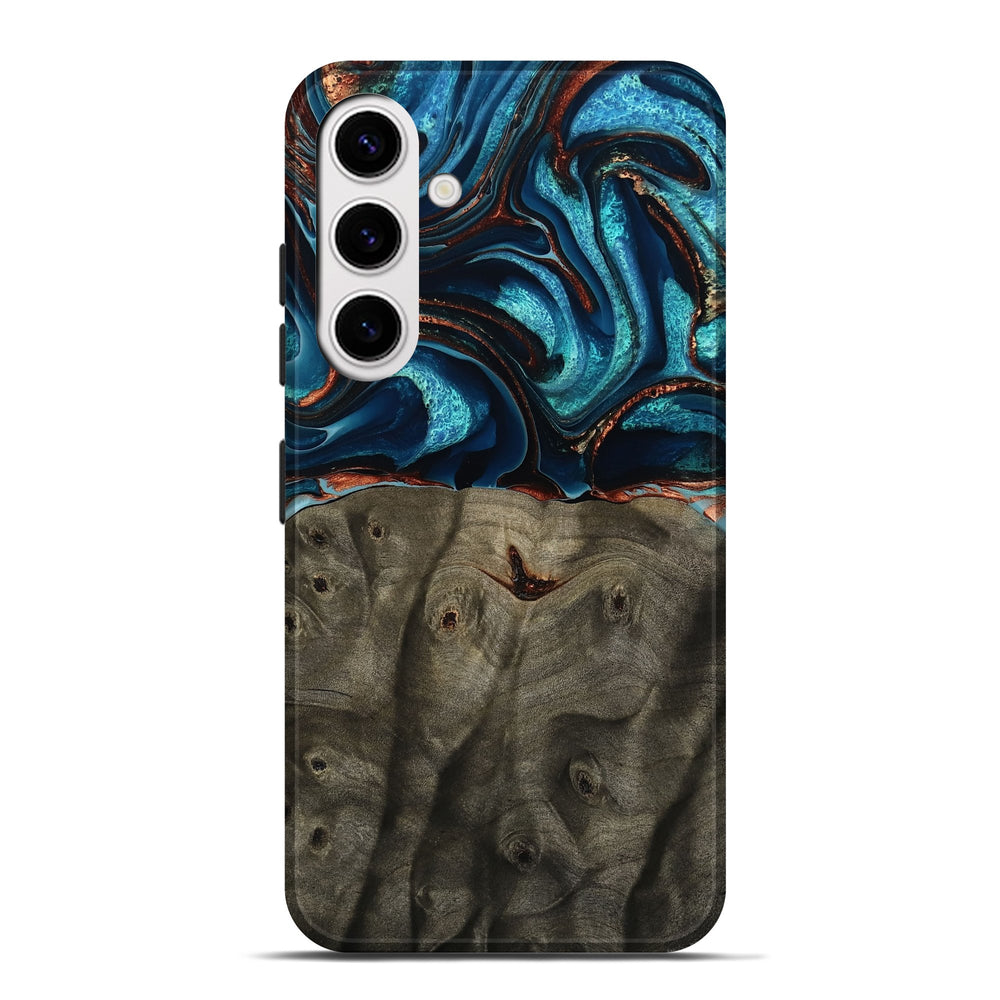 Our Live Edge cases are made from an amazing combination of stabilized wood burl and colored resin. Our stabilization process hardens the wood to protect against cracks and breaks. We do every step of the process at our shop in Northern Indiana. Perfectly fits the Galaxy S25 Plus.