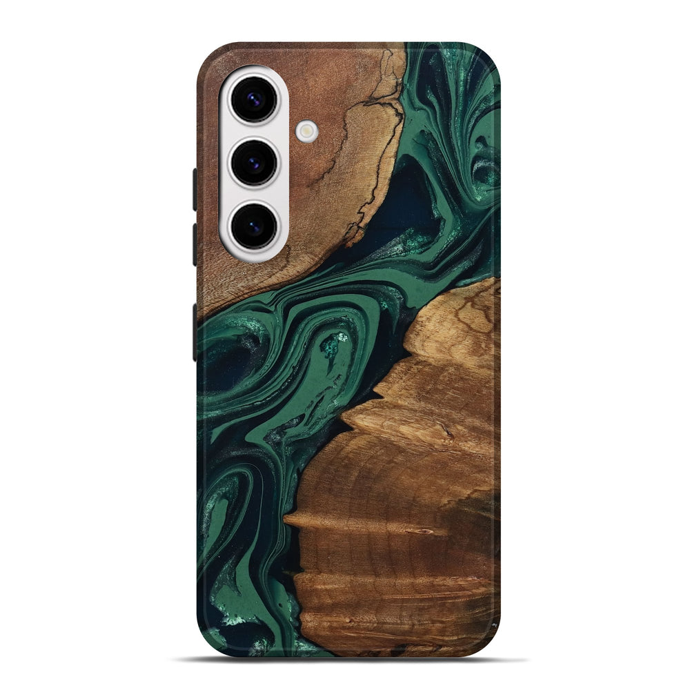 Our Live Edge cases are made from an amazing combination of stabilized wood burl and colored resin. Our stabilization process hardens the wood to protect against cracks and breaks. We do every step of the process at our shop in Northern Indiana. Perfectly fits the Galaxy S25 Plus.