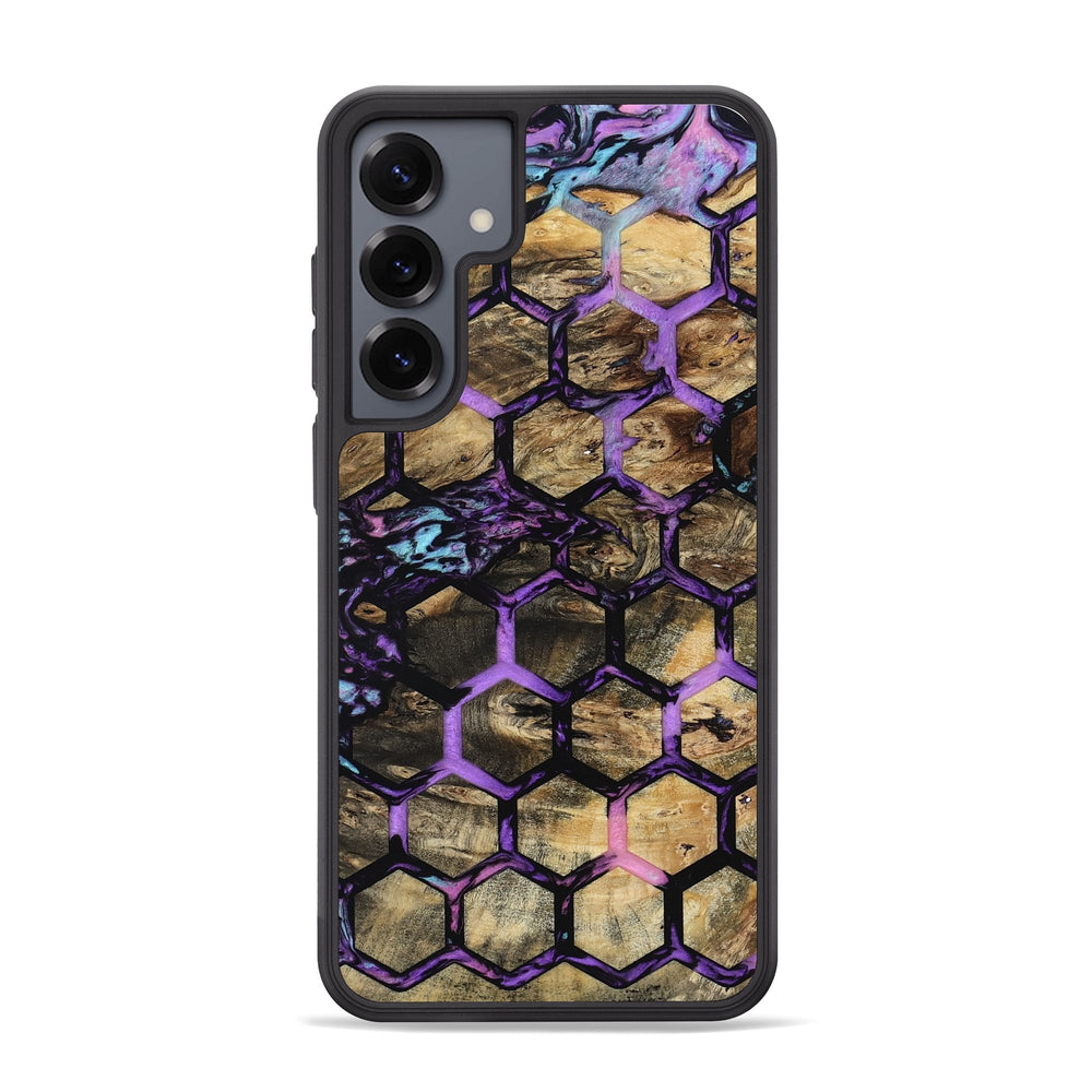 Angelia has a unique honeycomb pattern that highlights the natural beauty of Buckeye wood. Its blend of earthy tones and soft purples creates a warm and inviting look.