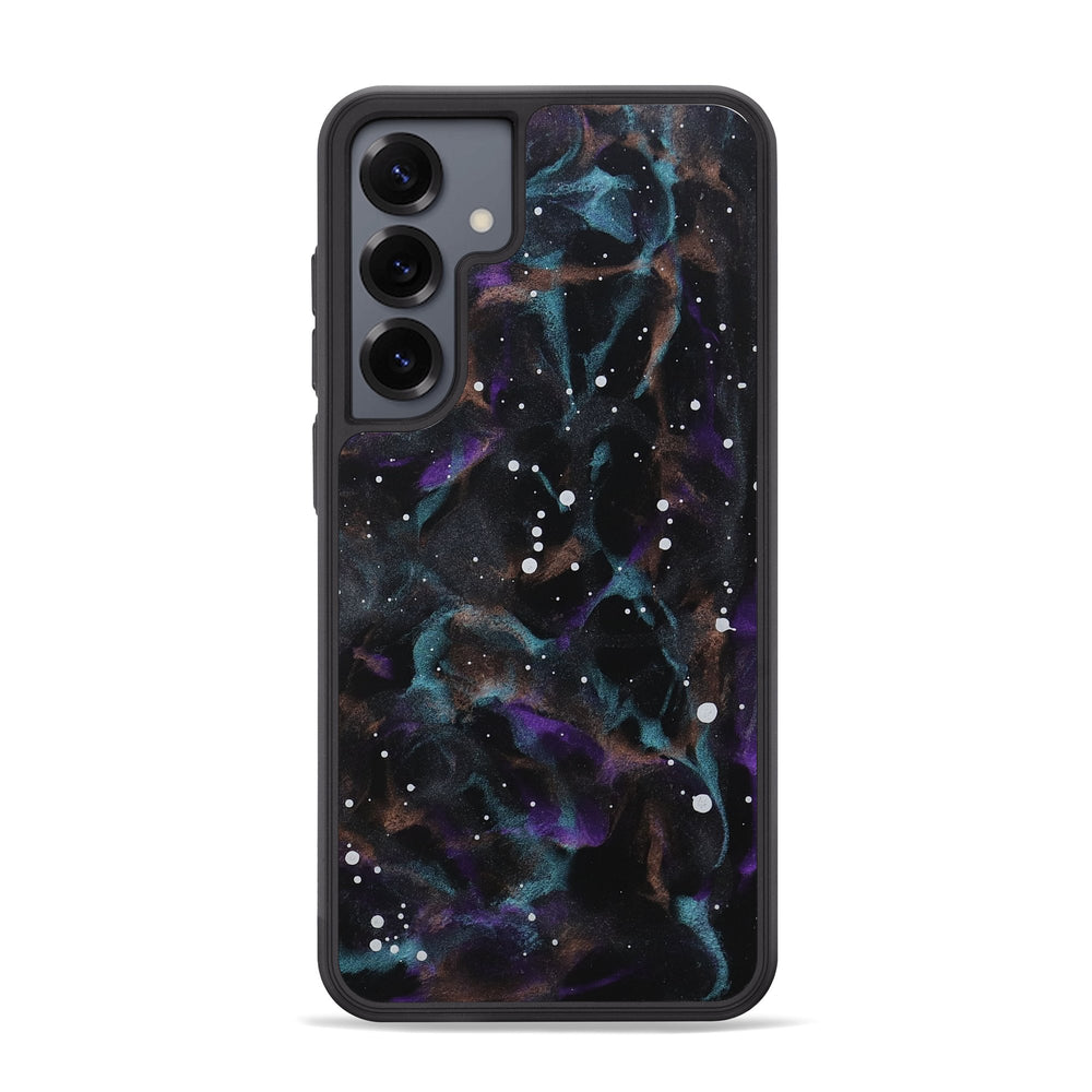 Aric has a deep black background with swirling shades of blue, purple, and hints of bronze. It features white speckles scattered throughout, resembling stars in a night sky.