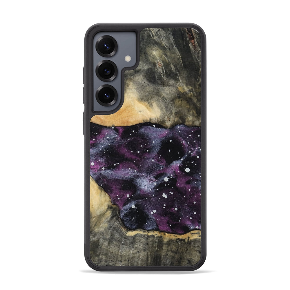 Haleigh has a rich, natural wood grain with warm tones that complement its unique design. It features a beautiful galaxy pattern of deep purples and subtle white specks, creating a striking contrast.